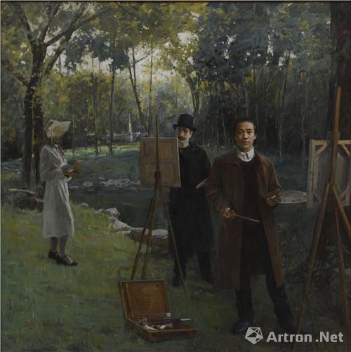 翁誕憲 《林風眠與恩師梁伯聰》 200×200cm