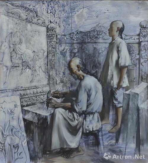 曹立偉 《林風眠跟祖父打石碑》 200×180cm